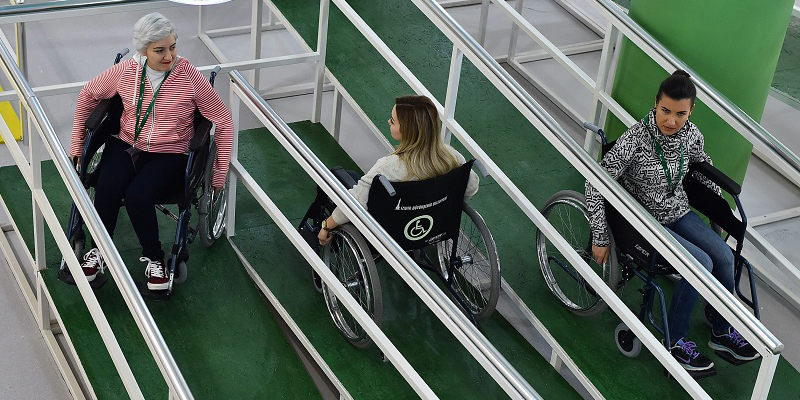 Mimar adayı gençler, tekerlekli sandalye parkurunu deneyecekleri zaman, önce sandalyenin nasıl açıldığını bilmediklerini farketti. Uzman rehber eşliğinde parkurda ilerleyen öğrencilere, sık sık dışarıdaki hayatta bu kadar düz araçsız bir yerin olmadığı, kamusal alanlardaki birçok yol, rampa ve alanın genişlik, eğim ve dönüş için uygun olmadığı, bu nedenle tekerlekli sandalye kullanan bireylerin zor anlar yaşadıklarını hatırlatıldı.