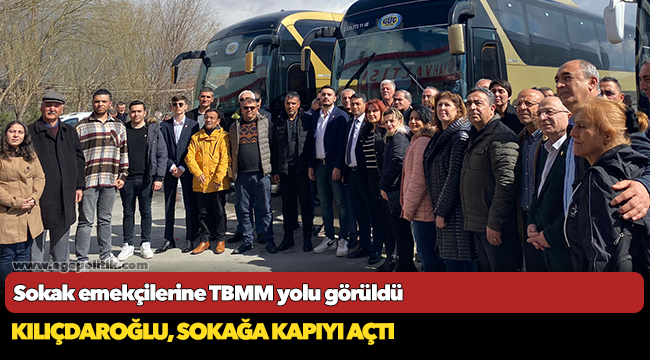 Geçtiğimiz gün 6 partinin genel başkanlarının ortak mutabakatla 134. Cumhurbaşkanı adayı olarak açıkladıkları CHP Genel Başkanı Kemal Kılıçdaroğlu, Cumhurbaşkanı adayı sıfatıyla yaptığı ilk konuşmada sokak emekçilerine de yer verdi. İzmir'den otobüslerle CHP Genel Merkezi önüne giden ve Kılıçdaroğlu'na destek veren İzmir Esnaf ve Sanatkarlar Meclisi Başkanı Evren Laçin ile seyyar satıcıdan, kağıt toplayıcısına kadar bir çok alanda hizmet veren üyelerin açtığı '13. Cumhurbaşkanımız Kemal Kılıçdaroğlu' pankartı Genel Başkan Kılıçdaroğlu'nun gözünden kaçmadı.