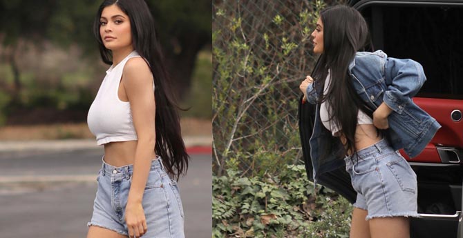Beverly Hills'te bir iş yemeğine katılan seksi model Kylie Jenner giydiği elbise ile nefes kesti.