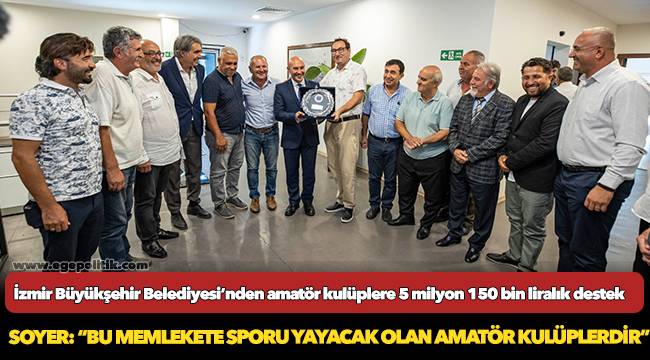 İzmir Büyükşehir Belediyesi, İzmir Amatör Spor Kulüpleri Federasyonu'na 5 milyon 150 bin liralık nakdi destek veriyor. Destek çekini Federasyon Başkanı Efkan Muhtar'a teslim eden Başkan Tunç Soyer, “Elimizden ne geliyorsa yapmaya devam edeceğiz, gücümüzü sonuna kadar zorlayacağız” dedi.