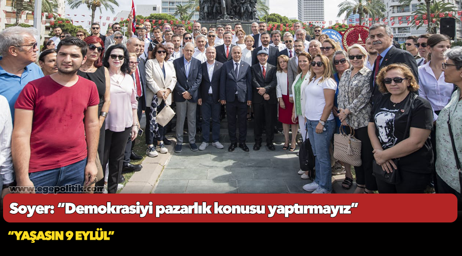 Soyer sözlerini; “9 Eylül, İzmir’in işgalden kurtuluşunun 101’inci yılı ve Cumhuriyet’in kurucusu ve savunucusu Cumhuriyet Halk Partimizin kuruluşunun 100’üncü yılı kutlu olsun. Yaşasın Türkiye Cumhuriyeti. Yaşasın 9 Eylül!” ifadeleriyle son verdi.