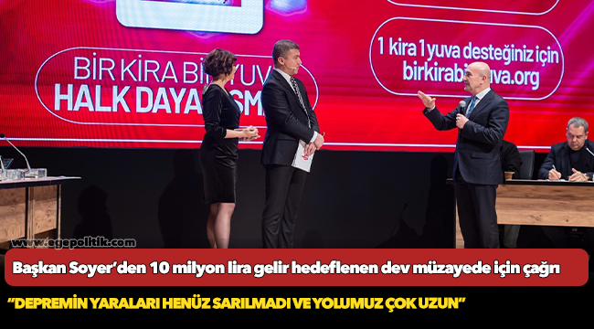İzmir Büyükşehir Belediye Başkanı Tunç Soyer’in önderliğinde 1 Mayıs’ta başlatılan ve 21 Mayıs’a kadar sürecek “Sen Ben Yok, Biz Varız” sanatla deprem dayanışma etkinliğinden elde edilecek gelir depremzedelere aktarılacak. Başkan Soyer, “Tüm sanatseverlerin katılımını bekliyoruz. Unutmayalım ki depremin yaraları henüz sarılmadı ve yolumuz çok uzun” dedi. Müzayedeyle “Bir Kira Bir Yuva” kampanyasına 10 milyon liralık katkı sunulması hedefleniyor.