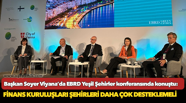 İzmir Büyükşehir Başkanı Tunç Soyer Viyana’da 20-21 Ekim tarihleri arasındaki Avrupa İmar ve Kalkınma Bankası (EBRD) Yeşil Şehirler Konferansı’na katıldı. EBRD Yeşil Şehirler Programı’na dâhil olan şehirlerin yöneticilerinin ilk kez fiziki olarak bir araya geldiği “Sermaye Piyasaları” oturumunda konuşan Başkan Soyer, İzmir’in Avrupa İmar ve Kalkınma Bankası hibesiyle Yeşil Şehir Eylem Planı’nı Türkiye’de ilk hazırlayan kent olduğunu belirterek sözlerine başladı. Soyer, “İklim krizi nedeniyle hasta bir gezegende yaşıyoruz. Bu nedenle dünyaya bakış açımızı değiştirmemiz gerekiyor. Biz doğadan uzaklaşıp doğa kanunlarına aykırı hareket ettikçe eşitsizlikler artıyor. İzmir’de hayata geçirdiğimiz projelerde başarı kriterimiz kentin doğasıyla, insanıyla uyumlu işler yapmaktı. İzmirlileri doğayla yeniden buluşturan Yaşayan Parklar projemiz de, tarımda su tüketimini azaltacak ürünleri desteklememiz de bu anlayışın bir parçasıdır” dedi.