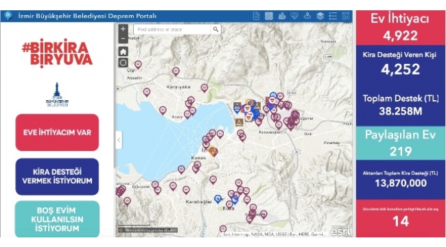 İzmir Büyükşehir Belediyesi’nin depremzedeler için başlattığı dayanışma kampanyası sürüyor. “Bir Kira Bir Yuva” kampanyası kapsamında kira desteği 38 milyon 89 bine ulaştı.