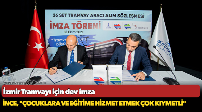 Başta yapımı süren Çiğli Tramvayı olmak üzere kentteki tramvay hatlarında kullanılacak 26 araçlık elektrikli tramvay setinin alımı için Bozankaya A.Ş. ile alım sözleşmesi imzalandı. Yaklaşık 750 milyon liralık sözleşmenin imza töreninde konuşan Başkan Tunç Soyer, “Kalıcı yatırımları gerçekleştirmek, yani İzmir’i demir ağlarla örmek, bugünün İzmirlilerine ve gelecek nesillere boynumuzun borcudur” dedi.
