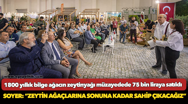 13 yerel üretici ve kooperatifin geleneksel usullerle sıkılmış ve şişelenmiş 20 özel zeytinyağının satışa sunulduğu müzayedede, bin 800 yaşındaki Umay Nine isimli zeytin ağacından elde edilen zeytinyağı 75 bin liraya alıcı buldu. İzmir Büyükşehir Belediye Başkanı Tunç Soyer, “Bu güzelim coğrafyada böyle büyük bir hazine ile beraber yaşıyoruz. Diliyorum ki çocuklarımızı, torunlarımızı yine yaşatmaya devam edecek bu kutsal ve bilge ağaç. Sonuna kadar sahip çıkacağız” dedi.