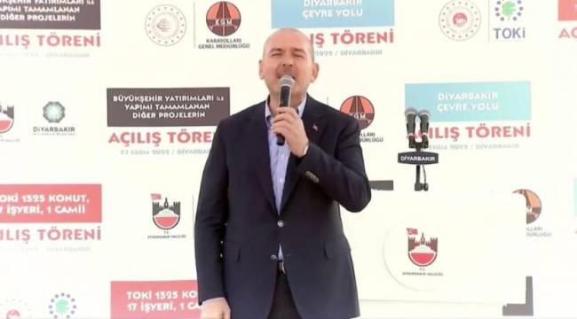 Diyarbakır'da toplu açılış töreninde konuşan Soylu "Diyarbakır dün de güzeldi, Diyarbakır bugün de güzel, yarın da güzel. Ama bir sorumluluğumuz var. Recep Tayyip Erdoğan başkanlığında Türkiye'de hep birlikte nasıl Diyarbakır'ı, Şırnak'ı, Hakkari'yi huzurlu yapmışsak, Allah nasip edecek, Erbil'i, Bağdat'ı, Şam'ı da huzurlu yapacağız. Hazır mısınız buna?" ifadelerini kullandı.