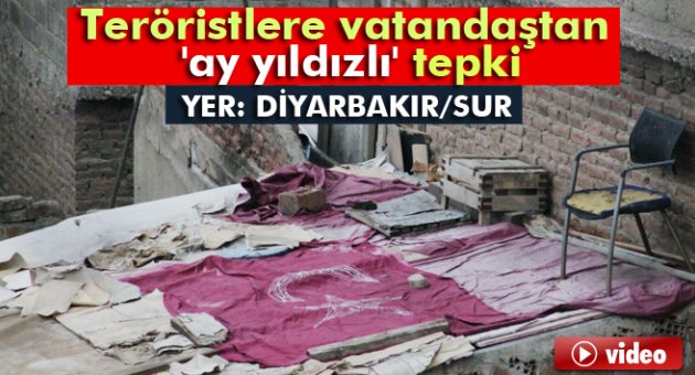 Terör örgütü PKK mensupları tarafından mahallerde açılan hendek ve kurulan barikatlara yönelik operasyonlar 59’uncu gününe girdi. Vatandaşları evlerinden eden terör örgütüne bölge halkından tepkiler çığ gibi büyümeye devam ediyor. Operasyonların sürdüğü Sur ilçesinde bir vatandaş, evinin çatısına kırmızı bir bez üzerine 'ay yıldızlı' Türk bayrağı çizerek tepkisi ortaya koydu. Çizdiği Türk bayrağını çatıda yere seren vatandaş, bayrağın rüzgardan etkilenip uçmaması için kenarlarına taşlarla destek verdi.