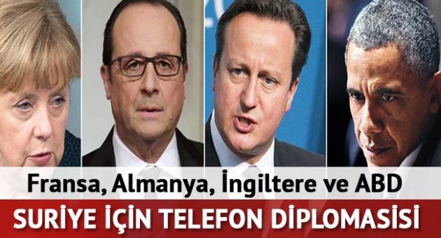 Fransa Cumhurbaşkanı François Hollande, Almanya Başbakanı Angela Merkel, İngiltere Başbakanı David Cameron ile ABD Başkanı Barack Obama’nın telefonda Suriye konusunu görüştükleri bildirildi.
