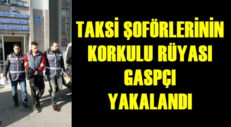Edinilen bilgiye göre, 19 Aralık’ta saat 02.00 sırlarında, Bornova Homeros Piknik Alanı'nda, ticari taksi şoförü A.Ş.'nin (44) aracına binen kimliği belirsiz erkek şahıs, belindeki tabancayı çıkarıp A.Ş.'ye göstererek paraları istedi. Korku ile A.Ş. cebindeki tüm parayı verirken zanlı daha sonra araçtan inip kayıplara karıştı. Polis bu olaydan sonra çalışma başlattı. Bu olaydan bir gün sonra, 20 Aralık günü saat 23.30 sıralarında, Bornova Kızılay Mahallesi 464 Sokak üzerinde, ticari taksiyi durduran kimliği belirsiz şahıs, taksi şoförü S.C.T.'ye (56) silah gösterip gasp etti. Gaspçı olaydan sonra yine kayıplara karışırken, olaydan 4 gün sonra yine bir taksici gaspı yaşandı. 24 Aralık günü saat. 01.30 sıralarında, ilk iki gaspın yaşandığı olay yerine yakın Kızılay Mahallesi 478 Sokak üzerinde, kimliği belirsiz şahıs ticari taksiyi durdu. Şüpheli şahıs, taksi şoförü M.Ç.'ye (37) silah doğrultup cebindeki paraları gasp etti. Zanlı daha sonra araçtan inerek uzaklaştı. Yaşanan 3 gaspla alakalı detaylı araştırma yapan Asayiş Şube Müdürlüğü Gasp Büro Amirliği ekipleri, zanlıyı tespit edip evine baskın yaptı. Zanlı Y.E. (25) polis ekiplerince yakalanırken gaspta kullandığı bir adet tabanca ve şarjörü de ele geçirdi. Emniyetteki işlemlerin ardından adliyeye sevk edilen zanlı Y.E., 'Geceleyin silahlı yağma' suçundan tutuklandı. Polisin gaspçıyı yakalamasından sonra taksi şoförleri rahat bir nefes aldı.