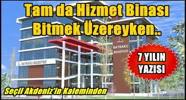 Bayraklı Belediyesi hizmet binasının yaklaşık 7 yıldır bitmesine binbir mani ve engel oldukları gibi şimdi hizmet binasının sonuna gelindiğini görenler bu rahatsızlıkları kamuoyu önünde yalanlarıyla gün yüzüne vurmaya başlamışlardır. Hükümet tarafından Bayraklı´ya tek bir çivi bile çakılmazken, Bayraklı´nın içerisinden gelen Bayraklılının sorunlarını çok iyi bilen aynı zamanda sorunları aşama aşama çözmeye çalışan ne mutlu ki bir Belediye Başkanı var. Daha geçtiğimiz günler içerisinde Nafizgürman Mahallesi Muhtarının verdiği kahvaltıda vatandaşların merakla beklediği imar konusu hakkında yaptığı çalışmaları Bayraklılı vatandaşlardan büyük takdir alırken, tabi ki çıkarcılar bundan rahatsız olmuştur.