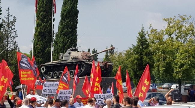 HKP MYK üyeleri ve partililer yoğun yağmura rağmen fabrikanın önünde “Tank Paleti Satmak Vatanı Satmaktır, İhanetin Hesabını Yargı Önünde Sorulacaktır” yazılı pankart, Mustafa Kemal Atatürk’ün kalpaklı portresinin bulunduğu “Bağımsızlık Benim Karakterimdir” yazılı ve parti bayraklarını açarak eylem gerçekleştirdi.