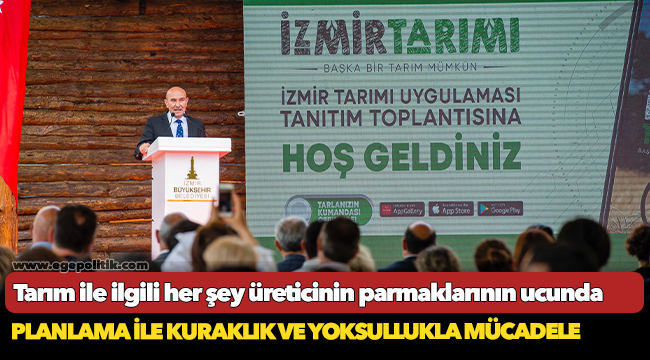 Seferihisar Çocuk Belediyesi’nin Halk Oyunları gösterisiyle başlayan lansmanda İzmir Büyükşehir Belediyesi Bilgi İşlem Dairesi Başkanı Ata Temiz ve Tarımsal Hizmetler Dairesi Başkanı Şevket Meriç “İzmir Tarımı” mobil uygulamasını üreticilere tanıttı. Açılış konuşmasında tarımı içine girdiği çıkmazdan kurtarmak için İzmir’de iki önemli adım attıklarını söyleyen Başkan Tunç Soyer, “Birincisi atalık tohumları ve yerli hayvan ırklarını desteklemek, ikincisi küçük üreticiyi büyütmek. Bu değişim için gerekli olan şey planlama ve destekleme. Yani hangi ürünün nerede ve ne zaman, ne kadar ekileceğini planlamak, küçük üreticileri kooperatif ve birlik çatısı altında desteklemek. Planlama konusu belki de işin en can alıcı yanı. Bugün Kültürpark'tayız. Yarın biri buraya 18 katlı bina yapacağım dese güler geçersiniz. Çünkü burasının bir planlaması var. Peki, tarımda bir planlama var mı? Maalesef yok. Kimsenin ne yapacağını, ne yetiştireceğini, karşılığında ne elde edeceğini bilmediği, sadece büyüklerin var olduğu bir tarım politikası içindeyiz. Aksine tarım önce küçük üreticinin elinden tutmalı ve onun ürününü pazarlamasına yardımcı olmalı. Bunun için planlama yapmamız lazım. Bizler havza ölçekli planlama yapıyoruz. Bunu yapmak için veriye ihtiyacımız var. Bu nedenle İzmir Tarımı mobil uygulaması çok önemli” dedi.