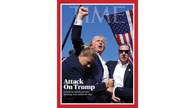 Trump'ın saldırının ardından kolunu havaya kaldırdığı fotoğrafı kapağına taşıyan Time, "Donald Trump, ülke gergin durumdayken hayatta kalmayı başardı" notunu paylaştı. Time'ın kapağı "Trump'ın zaferine" işaret etti.