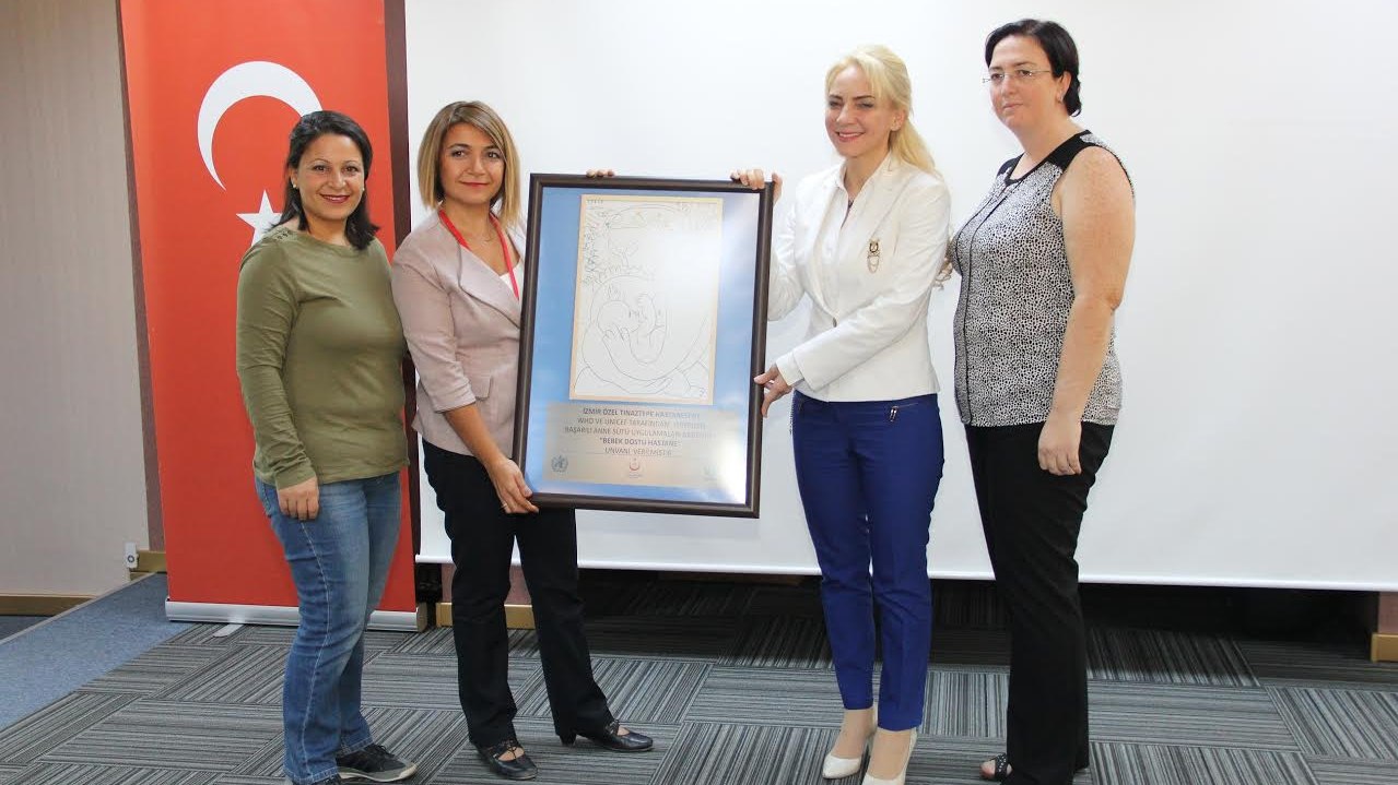 Geçtiğimiz gün İzmir Halk Sağlığı Müdürlüğü'nde 'Bebek Dostu Olmak' adlı eğitim toplantısı düzenlendi. Toplantıda Özel Tınaztepe Hastanesi'ne İzmir Halk Sağlığı Müdürü Uzm. Dr. Bediha Salnur tarafından “Bebek Dostu Hastane” unvanı verilerek, plaket takdim edildi.