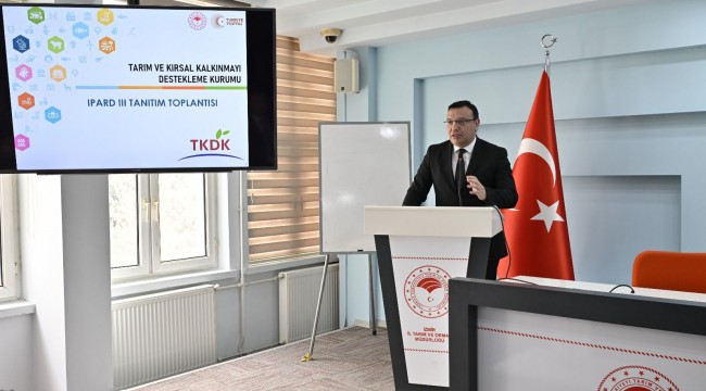 Toplantıda açılış konuşmasını yapan İzmir İl Tarım ve Orman Müdürü Mustafa Şahin IPARD III Programı’nın İzmir’i de kapsamasından duyduğu memnuniyeti dile getirerek; “Avrupa Birliği ve ülkemizin ortak finansmanı ile oluşturulan ve önceden 42 ilde verilen IPARD desteklerinden 2024 yılı itibariyle İzmir’de faydalanmaya başlayacak. Tarım ve Kırsal Kalkınmayı Destekleme Kurumumuz hayvancılık yatırımlarından, gıda sanayi tesislerine, bitkisel üretimden, kırsal turizme ve makine parklarına kadar birçok alanda yatırımcılarımıza destek olacak. TKDK desteklemeleri ile kurulacak ve AB standartlarına göre modernize edilecek işletmeler ile tarım ve sanayi sektöründe, hayvancılığın gelişmesinde, verimliliğin artırılmasında ve tarımsal üretim sektörlerinde ihracat olanaklarının yaratılmasında gücümüze güç katacağımıza inanıyorum.” dedi.