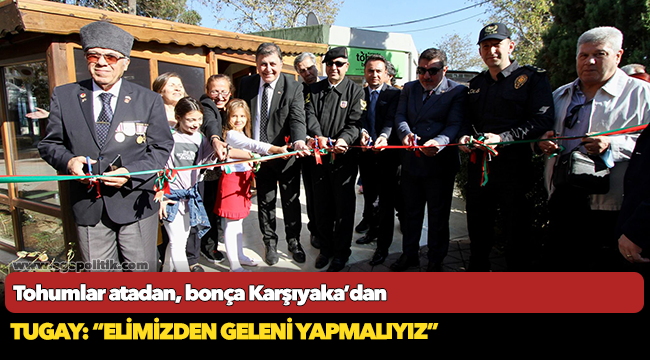 Konuşmasında 29 Ekim Cumhuriyet Bayramı’nı da kutlayan Tugay, “Bu güzel açılışı, Cumhuriyet’imizin kuruluşunun 99. yılının arifesinde yapıyoruz. Cumhuriyet’imiz ile gurur duyuyoruz, Atatürk’ümüz ve onun mücadele arkadaşları ile gurur duyuyoruz. Cumhuriyet’imizin değerlerini yaşayan ve yaşatan Karşıyaka’mızla, İzmir’imizle gurur duyuyoruz. Bizler Cumhuriyet değerlerinin dimdik arkasında olmaya devam edeceğiz. Bizden sonra da evlatlarımız bu davanın arkasında olmaya devam edecek. Ülkemize zarar vermek isteyen herkes, karşısında dimdik Türk milletini bulacak. Cumhuriyet Bayramı’mızı kutluyor, hepinize saygılar sunuyorum” ifadelerini kullandı.