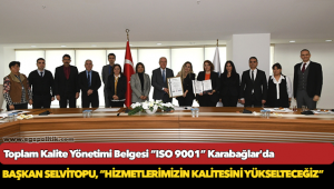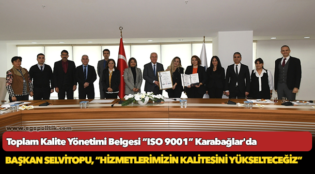 Vatandaşlara daha hızlı ve nitelikli hizmet sunarak memnuniyeti artırmayı hedefleyen Karabağlar Belediyesi, bu kapsamda Toplam Kalite Yönetimi Sistemi Belgesi'ni de (ISO 9001) aldı.