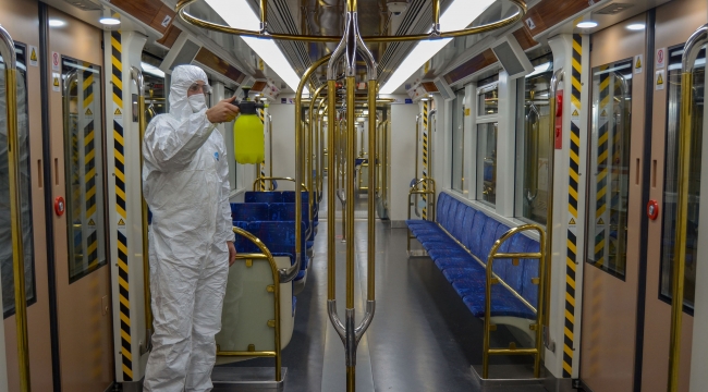 182 metro ve 38 tramvay aracı da her gün fırçalı yıkama ünitesinde otomatik olarak yıkanıyor; dezenfeksiyon sıvısı pulverize edilerek kullanıma hazır hale getiriliyor. Periyodik olarak da koltuk, tutamak gibi malzemeler tamamen sökülüp detaylı olarak temizleniyor.