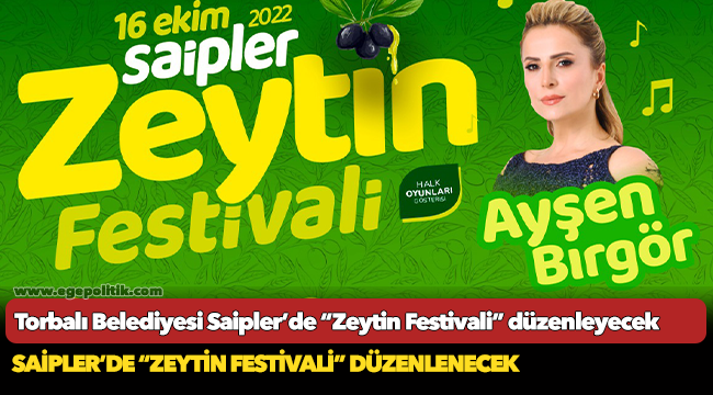 Festival kapsamında köylüler, kurulacak olan stantlarda zeytin, zeytinyağı ve ürettiği organik ürünleri satışa sunup ekonomilerine katkıda bulunacak. Yoğun katılım olması beklenen festivalde Türk müziğinin önemli isimlerinden Ayşen Birgör ve TRT ses sanatçısı Ali Çakar, sahne alacak. Tüm İzmirlileri festivale davet eden Torbalı Belediye Başkanı Mithat Tekin, “Torbalı Belediyesi olarak köylümüzün, üreticimizin yanında olmaya devam ediyoruz. Bu yıl da önemli festivaller yaparak üreticimizin ürettiği ürünler için pazar oluşturduk. İlçemizin en önemli tarım ürünlerinden bir tanesi olan zeytin için Pazar günü Saipler’de düzenleyeceğimiz Zeytin Festivaline herkesi bekliyoruz” ifadelerini kullandı.
