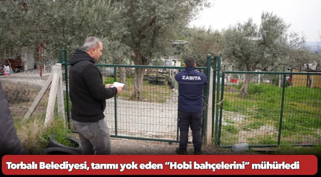 Bakanlık’tan, Çevre Şehircilik Müdürlüğü’nden ve vatandaştan gelen şikayetler üzerine harekete geçen Torbalı Belediyesi, tarım alanlarını talan edenlere karşı mücadele etmeye devam edileceğini açıkladı. İlçe genelinde hobi bahçelerine karşı denetleme ve mühürleme işlemlerinin aralıksız süreceğini ifade eden Torbalı Belediye Başkanı Övünç Demir, “Tarım arazilerimizin korunması amacıyla hobi bahçelerine asla geçit vermeyeceğiz. Son olarak Saipler, Dirmil, Bozköy, Karakızlar, Dağkızılca, Çamlıca ve Demirci mahallelerinde bulunan hobi bahçelerini mühürledik. Tarım arazilerini hobi bahçesi olarak tahsis eden kişilere gerek para cezası gerekse yasal işlem uygulamaya devam edeceğiz. Hemşehrilerimizle el ele doğal değerlerimizi korumayı sürdüreceğiz” ifadelerini kullandı.