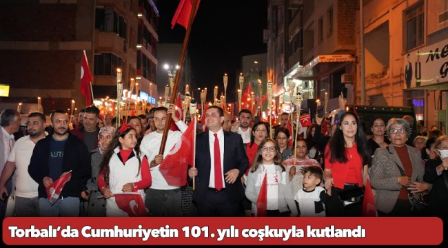 Torbalı’ya yakışır bir şekilde Cumhuriyet coşkusunu yaşatan Torbalı Belediyesi, 19:23’te fener alayı düzenledi. Ertuğrul Mahallesi dört yol mevkiinde başlayan fener alayına Torbalı Belediye Başkanı Övünç Demir’in yanı sıra CHP Torbalı İlçe Başkanı Şengül Babacan, meclis üyeleri, STK temsilcileri ve binlerce vatandaş katıldı. Şarkılar ve marşlar ile ilçe merkezini turlayan fener alayı kortejine, katılamayan ilçe sakinleri ise evlerinin balkonlarından eşlik etti. Kutlama programlarının finalinde ise Ersay Üner konseri düzenlendi. Saat 20:30’da başlayan konserde ünlü sanatçı, Cumhuriyet Bayramı’nda en sevilen şarkılarını ilçe sakinleri için seslendirdi. Binlerce vatandaşın katılım gösterdiği konser, renkli görüntülere sahne oldu.