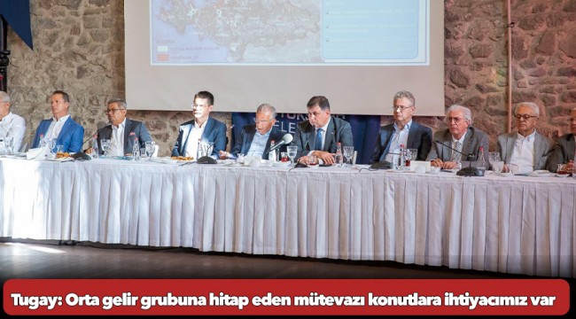 Toplantıda, İzmir Büyükşehir Belediyesi İmar ve Şehircilik Dairesi Başkanı Banu Dayangaç ise İzmir'in kuzey bölgesinin planlama sürecine ilişkin sunum gerçekleştirdi. Başkan Tugay, bu bölgedeki 5 bin hektarlık konut alanının planlanmasında dikkat edilecek noktaları sıraladı. Başkan Tugay, “Bu bölgede yeni yapılan organize sanayilerde, serbest bölgelerde çalışacak insanların aynı zamanda yerleşeceği, işe gidip gelmekte zorluk çekmeyeceği, mesafenin kısalacağı, diğer taraftan İzmir için öngördüğümüz çalışmaları yaptığımız yeni yerleşim birimleri oluşturalım istiyoruz. Ama bu bölgeler aynı zamanda altyapısı, ulaşımı, çevreye olan etkileriyle, su, enerji ihtiyaçlarıyla, sosyal donatılarıyla iyi planlanmış olsun. Sosyal konut niteliğinde olsun. Konut yapan herkes lüks konut yapmaya çalışıyor. Lüks konutlar yüksek maliyetli, dolayısıyla alım gücü olmayan insanlar için almak ya da kiralamak sorunlu hale geliyor. Biraz daha orta gelir grubuna hitap eden mütevazı konutlara ihtiyacımız var. Nitelikli yaşam alanları yaratarak daha sağlıklı bir kentleşme planlıyoruz” dedi.