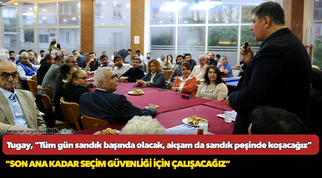 28 Mayıs seçimlerinin Türk demokrasi tarihinin bir kilometre taşı olacağını ifade ederek sözlerine başlayan Tugay, “Türkiye’nin, insanlarımızın şu anda demokrasiye ihtiyacı var, adil bir yönetime ihtiyacı var. Adil ve doğru bir seçim yapılsa yüzde 100 eminim kazanacağımıza. Hiçbir şüphemiz yok. Aksi duruma izin vermemek için halkın iradesinin sandığa güvenli ve şeffaf bir biçimde yansıması için pazar sabahı ve gün boyu sandık başında, akşam da sandık peşinde koşacağız. Son ana kadar seçim güvenliği için çalışacağız. Artık günleri değil saatleri sayıyoruz” dedi.