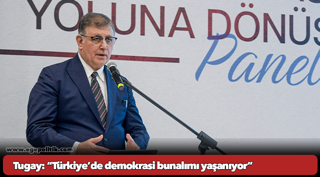 İzmir Büyükşehir Belediye Başkanı Dr. Cemil Tugay, sağlıklı siyaset yapma ortamının bozulması nedeniyle bugün gerçek bir demokrasi bunalımı yaşandığını söyleyerek konuşmasına başladı. Tugay, “Seçim yapılıyor ama çok sağlıksız şartlarda yapılıyor. Partilerimiz var ama parti içinde demokratik yapının işleyişini bozan bir siyasi partiler kanunu var. Seçim yasası sıkça oynandı. En önemlisi toplumumuzda fark etmeden bir demokrasi okuryazarlığı sorunu gelişti. Özellikle belediye başkanı olduktan sonra toplumda belli konularda bilincin olmasının çok önemli olduğunu anladım. Demokrasi okuryazarlığından da bahsetmemiz gerektiğini düşünüyorum. Türkiye'nin üzerinde en fazla çalışması gereken konulardan birisi de bu” diye konuştu.