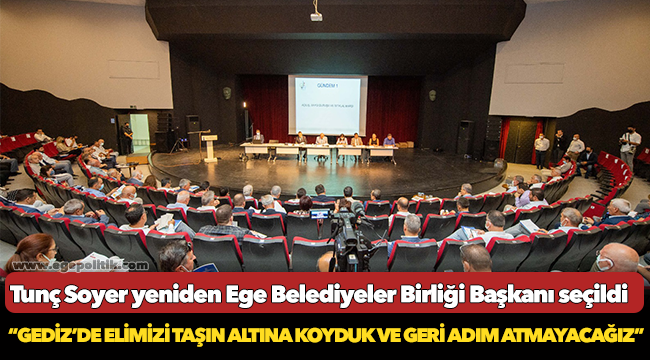 Ege Belediyeler Birliği 2021 Yılı Olağan Toplantısı İsmet İnönü Sanat Merkezi’nde yapıldı. Seçim sonucunda birliğin başkanlığına İzmir Büyükşehir Belediye Başkanı Tunç Soyer yeniden seçildi. Birinci başkan vekilliğine Manisa Büyükşehir Belediye Başkanı Cengiz Ergün, ikinci başkan vekilliğine ise Ödemiş Belediye Başkanı Mehmet Eriş seçildi.