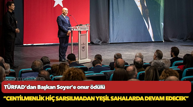 İzmir Büyükşehir Belediye Başkanı Tunç Soyer, Türkiye Futbol Adamları Derneği İzmir Şubesi tarafından bu yıl 24'üncüsü düzenlenen “İnsanlar Yaşarken de Anılmalıdır” töreninde onur ödülü aldı. Başkan Soyer centilmenliğin hiç sarsılmadan yeşil sahalarda devam edeceğini söyledi.