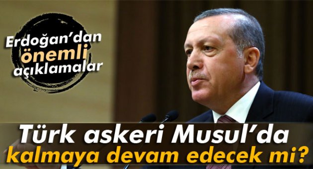 Bosna Hersek Cumhurbaşkanlığı Konseyi Başkanı Dragan Çoviç ve Bakir İzzetbegoviç’i ağırlayan Cumhurbaşkanı Erdoğan basın toplantısı düzenledi. Erdoğan, bir basın mensubunun "Türk askeri Musul’da kalmaya devam edecek mi ? sorusu üzerine "Musul’a Türk askerinin gitmesi aslında 2002 yılında olan bir harekettir. Bu hareketten sonra da 2014’te merkezi yönetimin talebi olmuştur. Kendilerinin bizden eğitim noktasında talepleri olmuştur. Askerlerimiz eğitimci olarak gitmiştir. Bunu geri çekmek gibi bir şey söz konusu değil. Bu ayın 21’inde Kuzey Irak, Türkiye ve Amerikalı dostlarımızla bir çalışma yapılacaktır. Bu çalışmayla Irak’ın genelindeki gelişmeleri değerlendirecekler. Rusya BM Güvenlik Konseyi’ne gitmeyi ne adına yaptı bu ayrı bir sorundur. Rusya bir taraf değildir. Türkiye olarak bizler oradan verilen cevabı gördük. Bu müraacatı reddetti.Talep edilmediğimiz bir yerde yoğuz. Her talep eden ülkeye de olumlu cevap vermeye kimse mecbur değildir. Bir tarafta 911 km Suriye sınırımız var diğer tarafta 394 km Irak sınırımız var. Rusya nın bu ülkelerle sınırımı var. Değil. Laskiyenin kuzeyinde yeni bir üst kurmak istiyor. Bunu dünyaya izah etmesi lazım. Bunların hepsi gündeme geldi. Türkiye olarak gerilimden yana olmayacağız. Sabırlı olacağız" dedi.