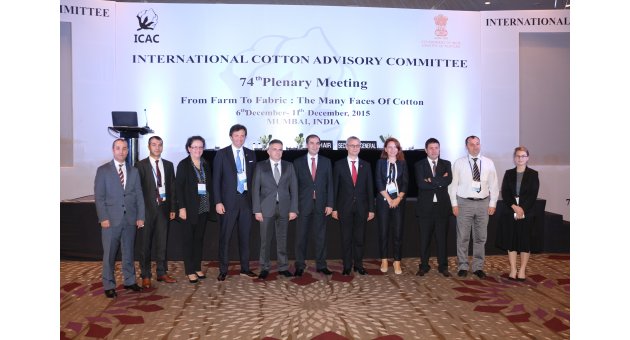 Bombay / HİNDİSTAN - Uluslararası Pamuk Danışmanları Komitesi (ICAC-International Cotton Advisory Committee) 74. Genel Kurul Toplantısı, 6-11 Aralık 2015 tarihleri arasında Hindistan’ın Bombay kentinde, 41 ülke ve 9 uluslararası kuruluş temsilcilerinden oluşan 398 kişilik bir katılımla yapıldı. Türkiye’nin Ekonomi Bakanlığı Müsteşarlığı düzeyinde temsil edildiği toplantıya, İzmir Ticaret Borsası (İTB) Meclis Başkanı ve Ulusal Pamuk Konseyi (UPK) Başkanı Barış Kocagöz ve Yönetim Kurulu Üyesi Şeref İyiuyarlar, Ulusal Pamuk Konseyi Genel Sekreteri Prof.Dr. Ünal Evcim katıldı.