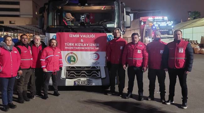 İzmir Valiliği ile Türk Kızılay İzmir İl Şubesi, merkez üssü Kahramanmaraş’ın Pazarcık ilçesi olan ve 10 ili etkileyen 7,7 ve 7,6 büyüklüğündeki depremlerin ilk dakikalarından itibaren bölgeye yardım göndermek için çalışmalara başladı. Türk Kızılay Ege Afet Müdürlüğündeki merkeze akın eden vatandaşlar malzemelerini teslim ederken, saatler içerisinde tırlar deprem bölgesine gönderildi. Deprem bölgesine giden yardım tırlarında kuru gıda, kıyafet, battaniye, ısıtıcı ayakkabı, çocuk bezi, paket havlu, hijyen ürünleri, peçete gibi malzemeler yer aldı. Ayrıca Türk Kızılay İzmir İl Başkanı Kerem Baykalmış, yardım toplama merkezindeki çalışmalarda da yer aldı.