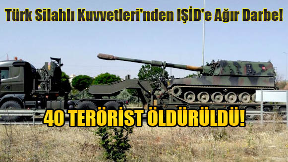 IŞİD terör örgütü tarafından Gaziantep’in Oğuzeli ilçesine roket atılmasından sonra yapılan hava operasyonu ve top atışları ile 40 terörist öldürüldü.