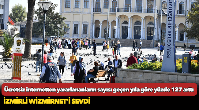 İzmir Büyükşehir Belediyesi'nin Wizmirnet ücretsiz internet hizmeti 430 noktadan verilmeye başlandı. 1 milyon 100 bin metrekarelik alan içerisinde ücretsiz internet hizmeti sunan Büyükşehir Belediyesi, 650 bin kullanıcıya erişti. Kullanıcı sayısında geçen yıla göre yüzde 127 oranında artış yaşanırken, bugüne kadar 16 milyon kez oturum açıldığı belirlendi.