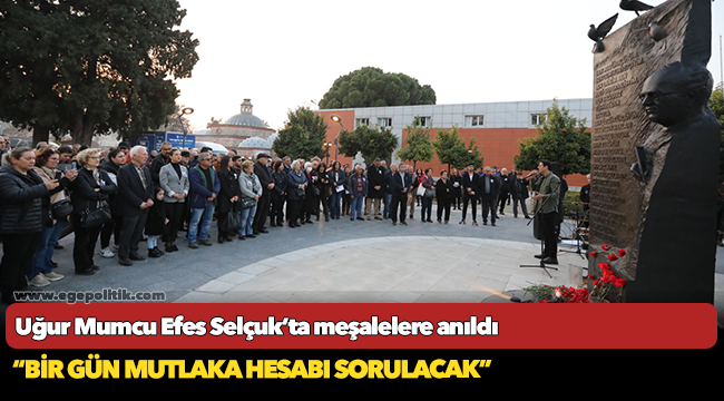 Saygı duruşu ve İstiklal Marşı’nın ardından Atatürkçü Düşünce Derneği Selçuk Şubesi Başkanı Güllü Kartal günün anısına bir konuşma yaptı. Konuşmasında Uğur Mumcu ve 31 Ocak 1990 tarihinde katledilen ADD Kurucu Genel Başkanı Muammer Aksoy’un cesur, saygın, Cumhuriyetçi toplum önderleri olduklarını için hedef seçildiklerini belirterek; “Uğur Mumcu’nun katli halkın her kesiminde büyük infial yarattı. Devletin bütün kademeleri failleri ve azmettiricilerini bulmaya söz verdiler. Ama çözüm için atılan her adım engellendi. Duvardaki o tuğla bir türlü çekilmedi, çekilemedi. Türk ulusu, siyasi cinayetlere kurban giden yiğit evlatlarını da, onların katillerini, işbirlikçileri ve azmettiricilerini de unutmayacak, unutturmayacak, bir gün mutlaka hesabını soracaktır” dedi.