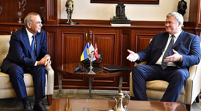 Ukrayna’nın Ankara Büyükelçisi Andrii Sybiha, İzmir Büyükşehir Belediye Başkanı Aziz Kocaoğlu'nu ziyaret ederek ülkesinin İzmir'e ilişkin önemli hedeflerini anlattı. Ukrayna İstanbul Başkonsolosu Oleksandr Gaman, Konsolos Yuriy Grynevetskiy ve İzmir Fahri Başkonsolosu Hikmet Güvercin'in eşlik ettiği konuk Büyükelçi, gelecek yıl düzenlenecek 87. İzmir Enternasyonal Fuarı'na "partner ülke" olabilmek için şimdiden gerekli girişimleri başlatmak istediklerini söyledi. Aralık ayında İzmir'de düzenlenecek Travel Turkey Fuarı'na Ukrayna olarak çok güçlü bir katılımla geleceklerini de açıklayan Andrii Sybiha, İzmir'e bir de "kardeş kent" teklifi getirdi.
