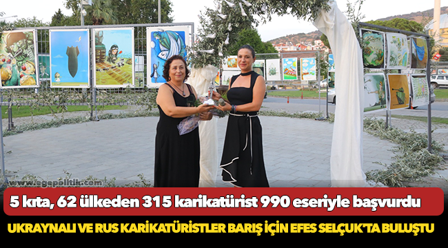 5 kıta, 62 ülkeden 315 karikatüristin 990 eseriyle başvurduğu “Dünya Barış Günü Karikatür Sergisi” kapsamında sergiye eserlerini göndererek katılım gösteren 102 sanatçının barış ile ilgili karikatürleri İstasyon Meydanı’nda sergileniyor.
