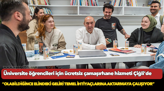 İzmir Büyükşehir Belediyesi, üniversite öğrencilerinin ücretsiz olarak faydalandığı çamaşırhane hizmetini genişletiyor. Büyükşehir Belediyesi Bornova’nın ardından Çiğli’de Katip Çelebi Üniversitesi kampüsü yakınında çamaşırhane hizmeti vermeye başladı. Çamaşır makinesi olmayan öğrencilerin randevu sistemiyle haftada bir kez yararlanacağı çamaşırhaneyi ziyaret eden İzmir Büyükşehir Belediye Başkanı Tunç Soyer, öğrencilerle sohbet etti. Başkan Soyer’e teşekkür eden öğrenciler, “Bu hizmete çok ihtiyacımız vardı. Uzun süre çamaşır yıkayamadığımız zamanlar oluyordu” yanıtını verdi.