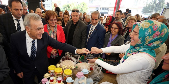 İzmir Büyükşehir Belediye Başkanı Aziz Kocaoğlu da yaptığı konuşmada en büyük teşekkürü Konak Belediye Başkanı Sema Pekdaş’ın hak ettiğini söyledi. Teşekkür sebebinin Pekdaş’ın sınırları içinde hiçbir köy ve çiftçinin bulunmadığı, bir demet maydanozun bile yetişmediği Konak’ta böylesine anlamlı bir projeyi hayata geçirmesinden kaynaklandığını belirten Başkan Kocaoğlu, “Ancak Konak, İzmir’in ekonomik olarak en güçlü ilçesi. Burada bilinç düzeyi çok yüksek. Üretici pazarının Konak’ta başlaması bu işin büyüyeceğinin, kırsala, çiftçiye, üreticiye, kooperatiflere desteğin artacağının en önemli göstergesi” diye konuştu.