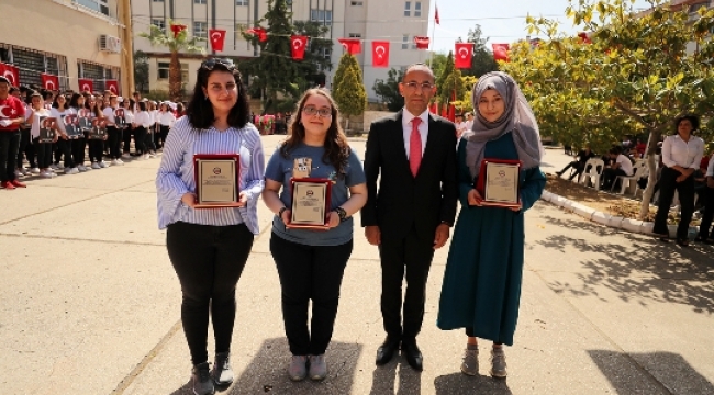 19 Mayıs Atatürk’ü Anma, Gençlik ve Spor Bayramı kutlamaları nedeniyle ilçede düzenlenen şiir, komposizyon ve spor müsabakaları yarışmalarında dereceye giren öğrencilere ödüllerini Kaymakam Önder Can, Garnizon Komutanı Albay Mustafa Karabalık, Başkan Burak Oğuz,ve Başsavcısı Tuncay Çelik takdim etti.
