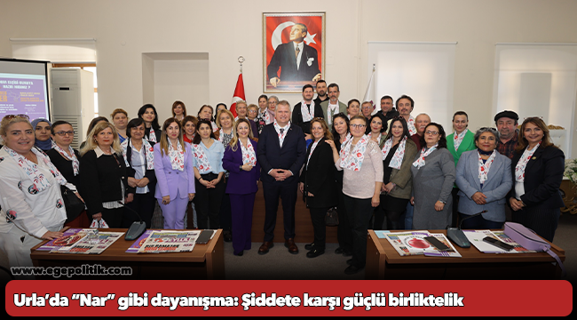 İzmir Gazeteciler Cemiyeti’nin (İGC) şiddete karşı yürüttüğü Nar Projesi kapsamında Urla’da farkındalık etkinlikleri düzenlendi. Belediye Başkanı Selçuk Balkan, muhtarlar, kadın dayanışma dernekleri ve esnafın katılımıyla gerçekleştirilen eğitimlerde, şiddete karşı ortak mücadele vurgulandı. “Mahallemizi Şiddete Kapattık” mesajıyla esnaf dükkanlarına afişler asılırken, toplumsal dayanışmanın önemine dikkat çekildi. İGC’nin Nar 2-Şiddete Karşı İletişim Projesi kapsamında Urla’da medyada şiddet dilinin dönüştürülmesi ve şiddete karşı farkındalık yaratılması amacıyla eğitimler ve esnaf buluşmaları düzenlendi. Muhtarların, esnafın ve belediyenin etkin rol oynamasının hedeflendiği etkinliklerde, toplumsal sorumluluk bilinci ön plana çıkarıldı. Esnaf ziyaretleri sırasında dükkanların camlarına “Mahallemizi Şiddete Kapattık” afişleri asılarak farkındalık çalışmaları yapıldı. Daha sonra Urla Belediye Meclis Salonu’nda muhtarlar ve sivil toplum temsilcileriyle bir araya gelen İzmir Gazeteciler Cemiyeti Başkanı Dilek Gappi ve Proje Koordinatörü Reyhan Şenay, şiddete karşı mücadele yöntemleri üzerine bir sunum gerçekleştirdi.