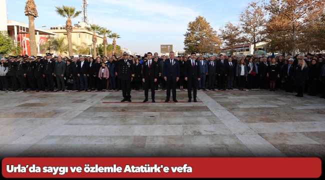 Türkiye Cumhuriyeti’nin kurucusu Büyük Önder Gazi Mustafa Kemal Atatürk’ün, ebediyete intikalinin 86. yılında Urla’da anma törenleri düzenlendi. Düzenlenen törene, Urla Kaymakamı Mustafa Gözlet, Garnizon Komutanı Deniz Albay Serdar Akan, Urla Belediye Başkanı Selçuk Balkan, Urla Cumhuriyet Başsavcı Vekili Nurullah Gürbüz, Şehit yakınları, Gaziler, ilçe birim müdürleri, muhtarlar, sivil toplum örgütleri, siyasi parti temsilcileri, öğrenciler ve Urla halkı katıldı. Anma programı, Urla Cumhuriyet Meydanı’nda çelenk sunma töreni ile başladı. Çelenk sunma töreninin ardından saat 09:05’te Urla’da hayat durdu, sirenler ve klaksonlar eşliğinde 2 dakikalık Saygı Duruşunda bulunularak, İstiklal Marşımız okundu ve gönderdeki Türk Bayrakları yarıya indirildi.