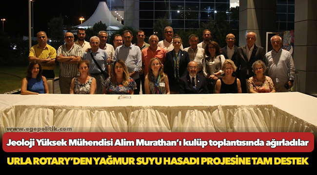 Urla Rotary Kulübü yağmur suyundan içme suyu elde edilen ve aynı zamanda ekosistemi de destekleyen yağmur suyu hasadı ve yönetiminin önemini İzmir Büyükşehir Belediyesi Başkan Danışmanı Alim Murathan’dan dinledi. Yağışlarda azalma olmadığını fakat sıcaklık artışlarının devam ettiğini dile getiren Murathan, “İçme suyu olarak şu anda önemli oranda yer altı su kaynaklarımızı kullanıyoruz ve bu da iklim değişikliğinin de etkileriyle kaynaklarımızın yok olması demek oluyor. Su Kaynakları Araştırma ve Uygulama Merkezi’nde çok disiplinli ve çok farklı bir ekip ile çalışmalarımızı yürütüyoruz. Ekosistemi de destekleyen Süngerkent İzmir projemiz ile yeşil alt yapı teknikleriyle yağmur suyunu yöneterek kuraklık ve susuzluğun önüne geçmeyi hedefliyoruz” şeklinde konuştu.