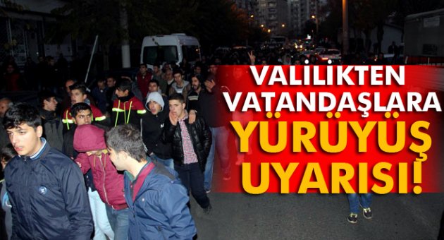 Diyarbakır Valiliği’nce, HDP ve DBP tarafından yarın yapılması planlanan yürüyüşe ilişkin yazılı açıklama yapıldı. Açıklamada, 2911 sayılı Toplantı ve Gösteri Yürüyüşleri Kanunu'nun 6. maddesinde, “Şehir ve kasabalarda ve gerekli görülen diğer yerlerde hangi meydan ve açık yerlerde veya yollarda toplantı veya yürüyüş yapılabileceği ve bu toplantı ve yürüyüş için toplanma ve dağılma yerleri ile izlenecek yol ve yönler vali ve kaymakamlarca kararlaştırılarak alışılmış araçlarla önceden duyurulur. Bu yerler hakkında sonradan yapılacak değişiklikler duyurudan 15 gün sonra geçerli olur. Toplantı yerlerinin tespitinde gidiş gelişi, güvenliği bozmayacak ve pazarların kurulmasına engel olmayacak biçimde, toplantıların genel olarak yapıldığı elektrik tesisatı olan yerler tercih edilir” denildiği belirtildi.