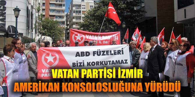 Alsancak ta bulunan Amerikalılar bugün konsolosluğu kapattılar. “Türkiye-Suriye kardeştir. Amerika kalleştir.” sloganlarıyla yürüyen Vatan Partililer ve Önlükleriyle ayrı bir görüntü veren Öncü Kadın üyeleri konsolosluk binasına kadar geldiler. VP Genel Başkan Yardımcısı ve İzmir İl Başkanı Dr.Rıfat Mutlu yaptığı basın açıklamasında Astana sürecine ve Batı Avrasya ülkeleri ile aramıza kama sokan Amerikan işgalini protesto etti. Mutlu İdlip’e yapılan saldırı için şöyle dedi “Ortada henüz kesinleşmiş bir kanıt ve Birleşmiş Milletler tarafından alınmış bir karar olmaksızın Suriye hava Üssüne yapmış olduğu füze saldırısını şiddetle kınıyoruz”
