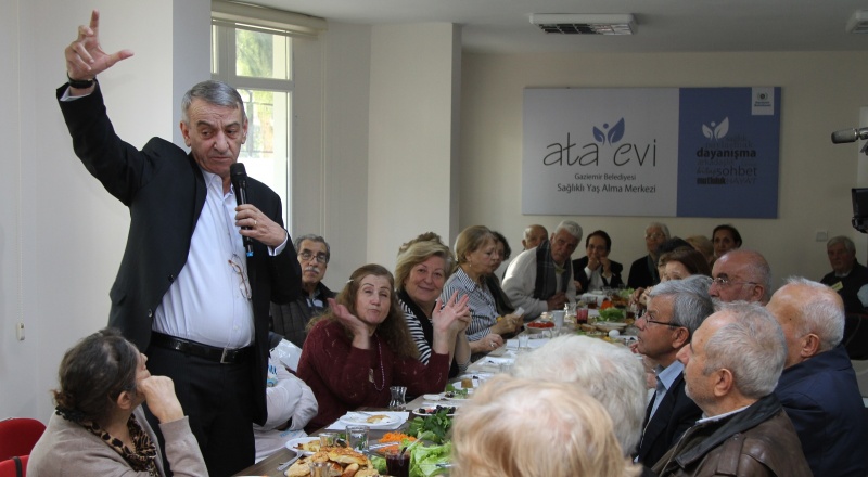 İzmir’de ilk kez bir ilçede hizmet vermeye başlayan Ata Evi’yle, yaşlı vatandaşların yaşamla bağlarını koparmalarının önüne geçilerek, evlerinden çıkıp sosyalleşmelerine olanak tanınıyor. Spor odası, kütüphane, dinlenme odası ve çeşitli etkinlik alanlarının bulunduğu merkezde verilen hizmetlerle yaşlı vatandaşların fiziki, sosyolojik ve psikolojik yönden güçlenmeleri sağlanıyor. Merkezde vatandaşların kişisel beceri ve yeteneklerine göre drama, koro, enstrüman, tiyatro, resim, örgü gibi etkinlikler düzenleniyor. Psikologun da görev yaptığı merkezde üyelerin ruhsal sağlıkları takip ediliyor, sosyal ve psikolojik açıdan destek veriliyor.