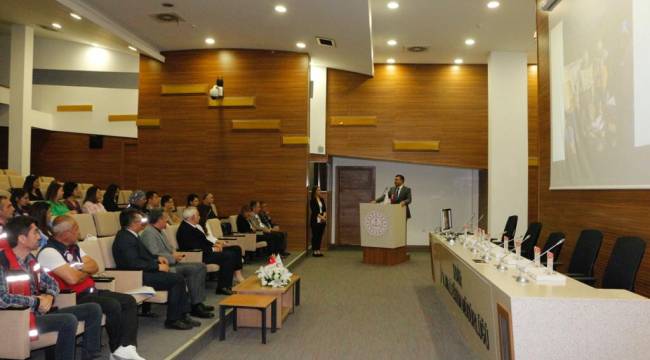 İzmir İl Milli Eğitim Müdürü Dr. Murat Mücahit Yentür, 15 Temmuz Şehitleri Konferans Salonunda deprem felaketi sonrası afet bölgelerinde görev alan gönüllü ekiplerle bir araya geldi.