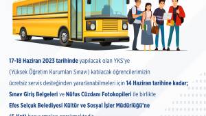 Efes Selçuk Belediyesi YKS’ye (Yükseköğretim Kurumları Sınavı) girecek öğrencilere bu yıl da ulaşım desteği sağlıyor.